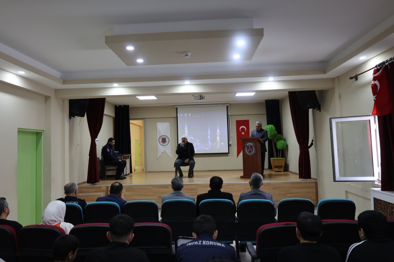 Hatay Çocuk Ve Gençlik Kapalı Ceza İnfaz Kurumu Manevi Rehberlik Birimi olarak kurumumuzda Manevi Rehberlik faaliyetleri kapsamında Yayladağı ilçe müftülüğünün’ de katkıları ile Miraç Kandili programı düzenlenmiştir. Program Yayladağı İlçe Müftülüğü Vaizi Mahmut KAFAS Hocanın Kuran-ı Kerim Tilaveti ile başlamış olup sonrasında yine Yayladağı İlçe Müftüsü Mehmet Şafi YILDIZ Hocanın günün anlam ve önemini anlatan konuşması ile devam etmiş olup; sonrasında kurumumuzdaki T/H çocukların ilahi okumaları, video gösterimi ve kapanış duası ile program sona ermiştir. Program sonrası ise tüm tutuklu hükümlülere ve kurum personeline lokum ikramında bulunulmuştur.