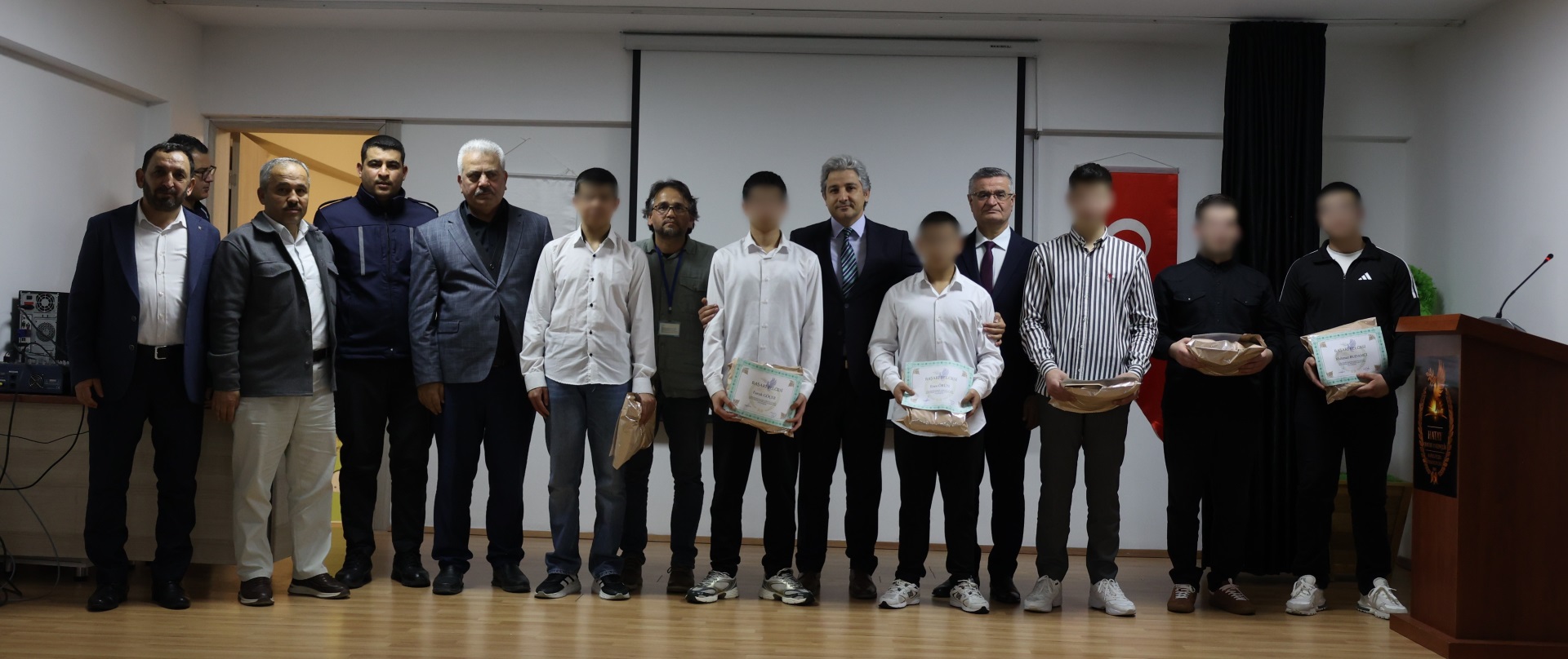 Hatay Çocuk Ve Gençlik Kapalı Ceza İnfaz Kurumu Manevi Rehberlik Birimi olarak, kurumumuzda Ceza ve Tevkifevleri Genel Müdürlüğü Baş Kontrolörü Murat KARATAŞ beyin misafir ve Hatay Mehmet Şenol Çiftçi İmam Hatip Ortaokulu Matematik Öğretmeni İsmail DÖKMECİ hocanın konuşmacı olarak katılımı ile toplumun temeli olan ailenin korunması ve HZ.Muhammed (s.a.s) in örnek ahlakını anlatan Program düzenlenmiştir. Program kurumumuzdaki T/H çocukların kuran-ı kerim tilaveti ile başlamış, sonrasında T/H çocukların ilahi dinletileri video gösterimi ve kapanış duası ile program sona ermiştir. Program sonunda başarılı t/h çocuklara hediye ve başarı belgesi verilmiştir.