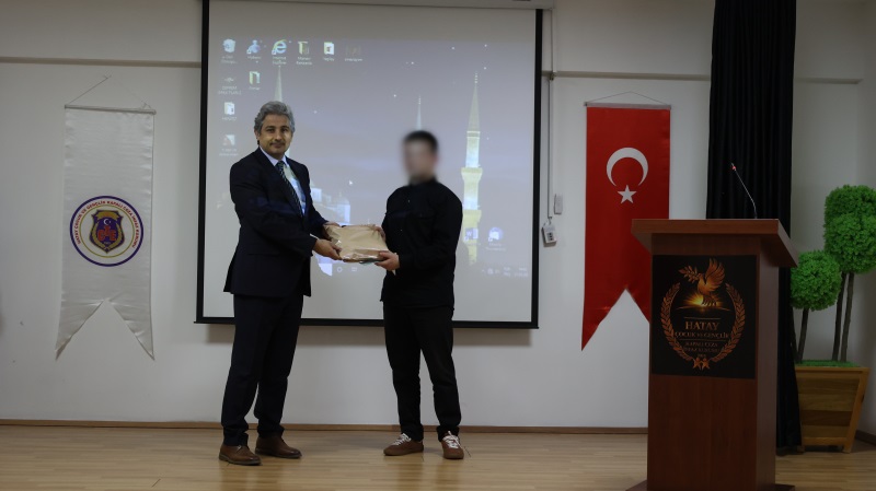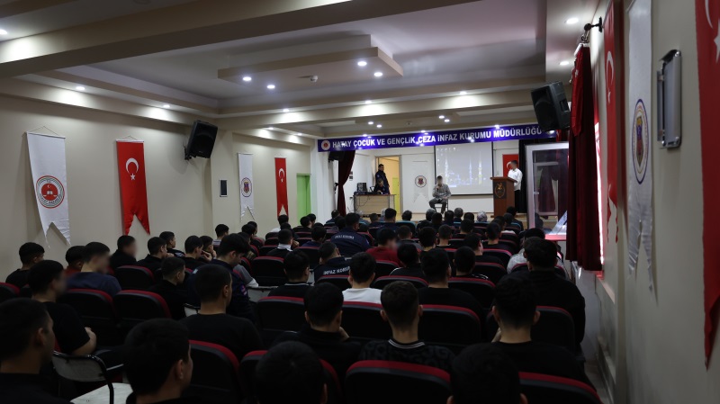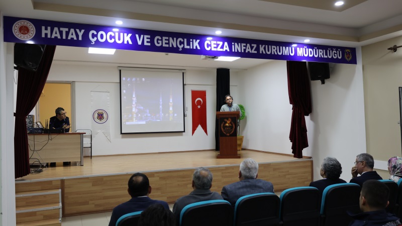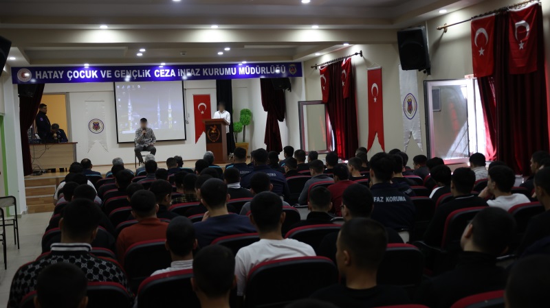 Hatay Çocuk Ve Gençlik Kapalı Ceza İnfaz Kurumu Manevi Rehberlik Birimi olarak, kurumumuzda Ceza ve Tevkifevleri Genel Müdürlüğü Baş Kontrolörü Murat KARATAŞ beyin misafir ve Hatay Mehmet Şenol Çiftçi İmam Hatip Ortaokulu Matematik Öğretmeni İsmail DÖKMECİ hocanın konuşmacı olarak katılımı ile toplumun temeli olan ailenin korunması ve HZ.Muhammed (s.a.s) in örnek ahlakını anlatan Program düzenlenmiştir. Program kurumumuzdaki T/H çocukların kuran-ı kerim tilaveti ile başlamış, sonrasında T/H çocukların ilahi dinletileri video gösterimi ve kapanış duası ile program sona ermiştir. Program sonunda başarılı t/h çocuklara hediye ve başarı belgesi verilmiştir.